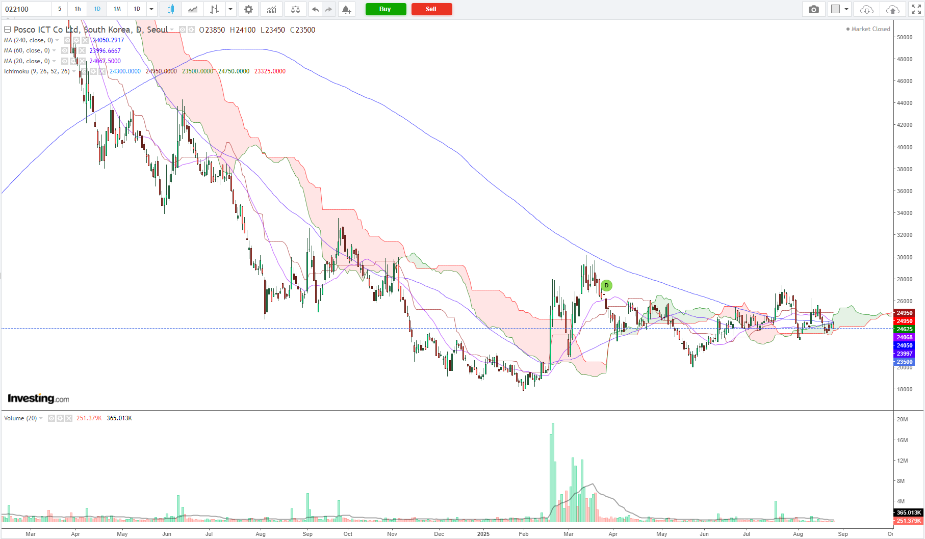 포스코DX는 구름대 하단 지지와 거래량 흐름을 동시에 체크해야 하는 구간에 있습니다. 단기 기술적 반등 여력은 있지만, 추세 전환 신호는 아직 확실치 않습니다. 따라서 분할 매수 + 엄격한 손절 원칙으로 대응하는 것이 핵심 전략입니다.